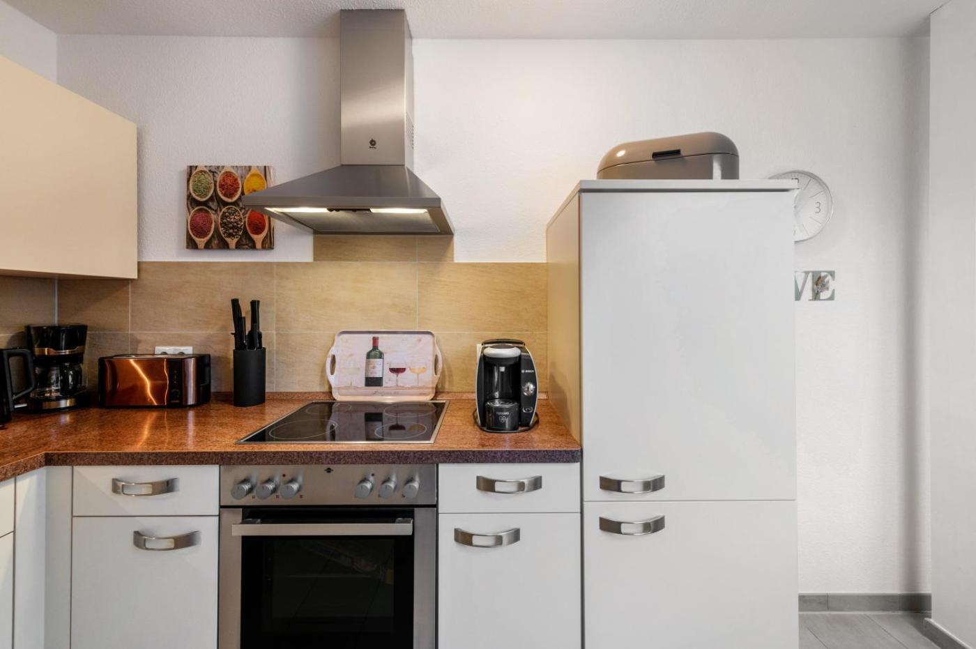 Three-Bedroom Premium Apartment with Balcony. This apartment boasts a hot tub and a fireplace. Featuring 3 bedrooms and 2 bathrooms with a bath, this spacious apartment offers a well-fitted kitchen and a terrace. In the fully equipped kitchen, guests will find a dishwasher, kitchenware, an oven and a microwave. Boasting a balcony with lake views, this apartment also provides a coffee machine and a TV with satellite channels. The unit has 5 beds.
