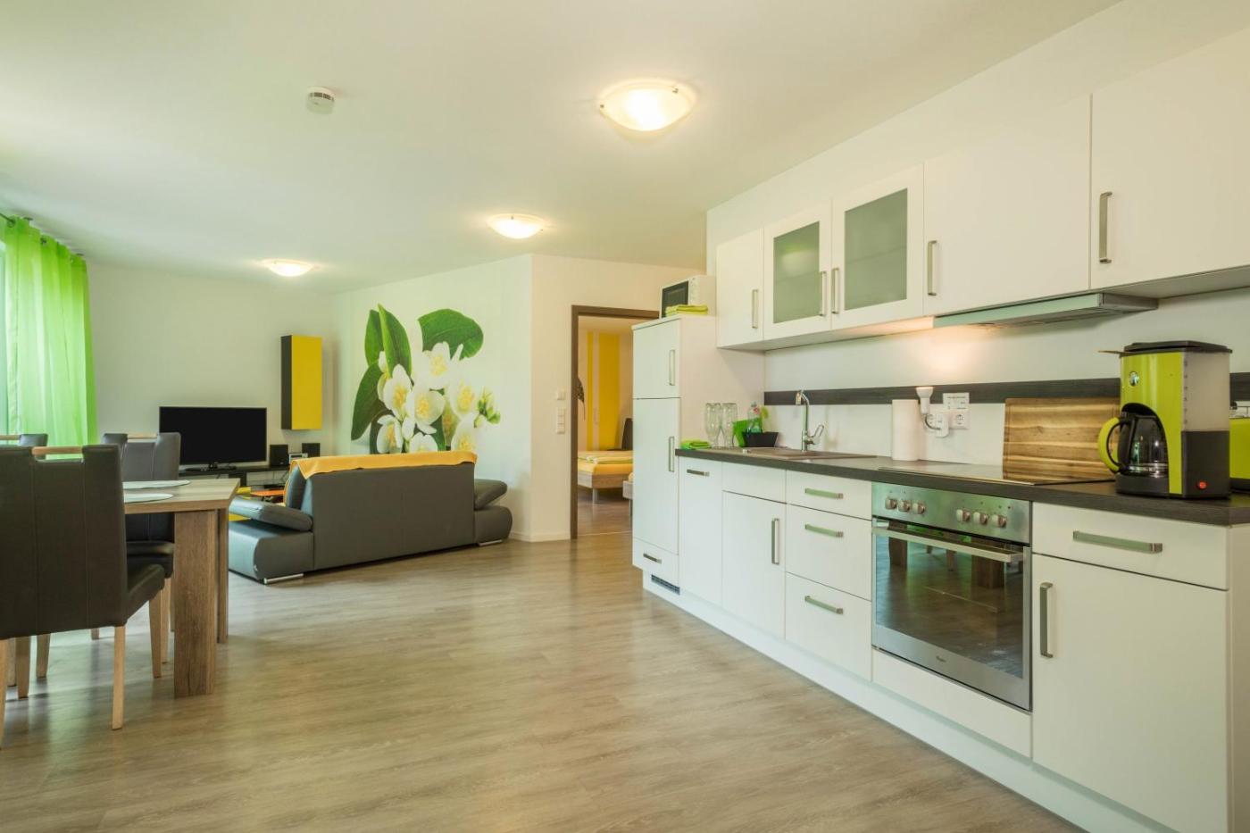 Apartment mit 1 Schlafzimmer und Gartenblick. Featuring 1 bedroom and 1 bathroom with a shower, this spacious apartment offers a well-fitted kitchen and a terrace. Meals can be prepared in the kitchen, which comes with a dishwasher, kitchenware, an oven and a microwave. The apartment provides a coffee machine, a safe deposit box, a high chair for children, a TV with cable channels, as well as garden views. The unit has 2 beds.